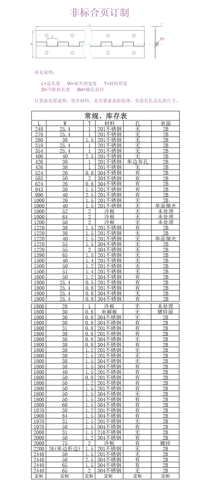 • 型號  非標長合頁